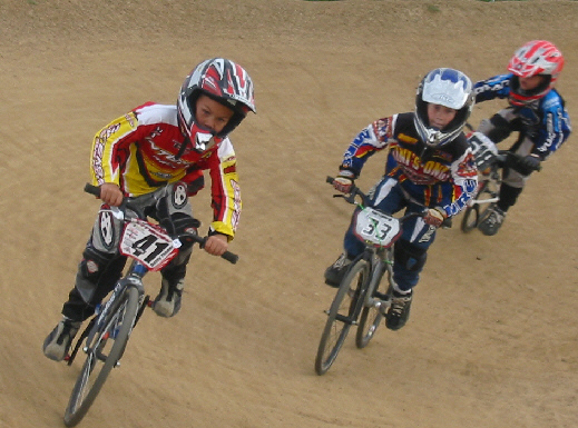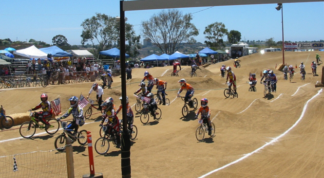 Before you get up on the starting gate, it is suggested that first you closely watch the riders go around the track. Pay attention to their body motion over jumps (using arms and legs as shock absorbers) and note where riders are pedaling and when they are coasting. Take it slow on your first few laps. Remember, you are brand new to this and those fast, expert racers started off just like you. Take time to learn the track - know which obstacles are coming up and how to take it smoothly. Often, the difference in the beginner class is who is smoothest around the course rather than quickest